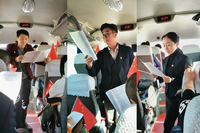 集中学习夯实理论底蕴。9月14日10:00,在齐齐哈尔开往鹤岗的大客车上,临时党支部组织师生党员、入党积极分子认真学习习近平总书记重要讲话精神。临时党支部书记陈曦泽、副书记李美虹、宣传委员邓重博分别领学了习近平总书记在庆祝中华人民共和国成立70周年大会上、在国家勋章和国家荣誉称号颁授仪式上、在庆祝中华人民共和国成立70周年招待会上的3篇重要讲话。