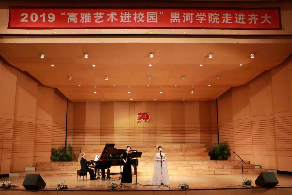 10月23日19时,2019年“高雅艺术进校园”黑河学院专场演出在sunbet申搏音乐厅隆重举行。黑河学院工会副主席卢丽艳、音乐学院院长徐卫,sunbet申搏宣传部、工会、团委、音乐与舞蹈学院的领导与1000余名师生观看了演出。