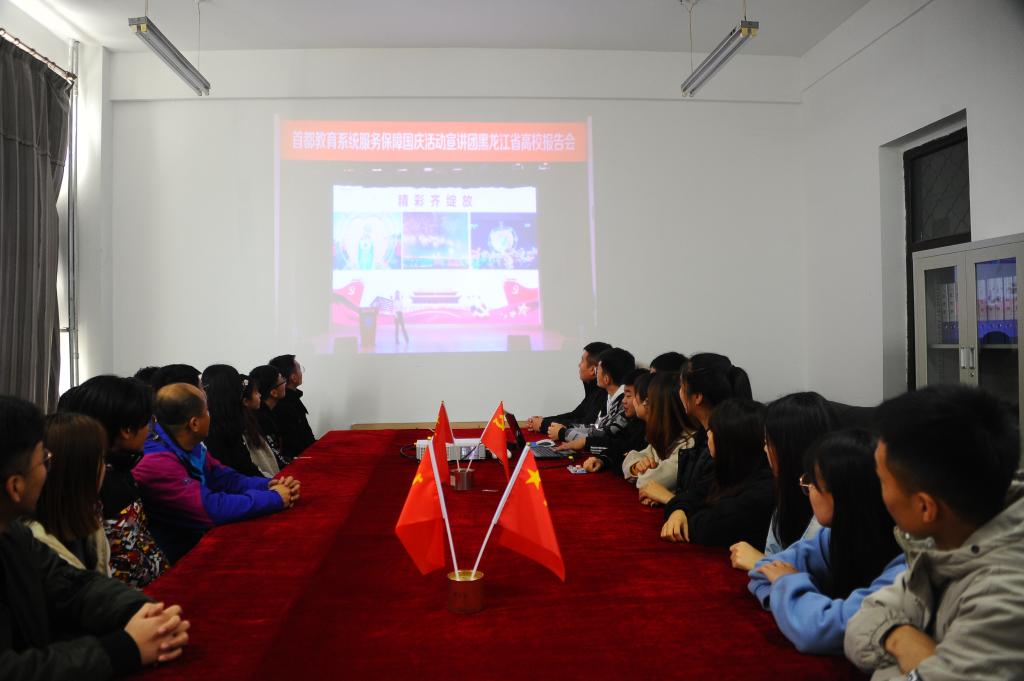 11月8日上午,由省委教育工委、省教育厅协办,黑龙江大学承办的首都教育系统服务保障国庆活动宣讲团黑龙江省高校报告会在黑龙江大学举行,为进一步激发爱国热情,在“不忘初心、牢记使命”主题教育中,加强爱国主义教育,弘扬爱国主义精神,11月7日,校党委宣传部向各二级党委、直属党支部发出了《关于组织收看首都教育系统服务保障国庆活动宣讲团黑龙江省高校报告会网络直播的通知 》,sunbet申搏师生积极响应,通过电视、网络、手机客户端等多种形式同步收看了报告会网络直播。