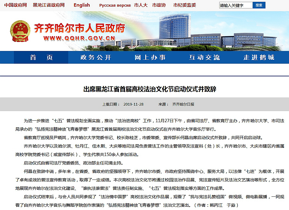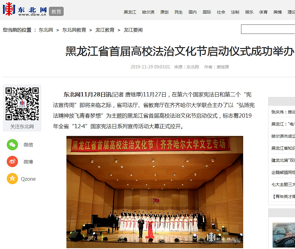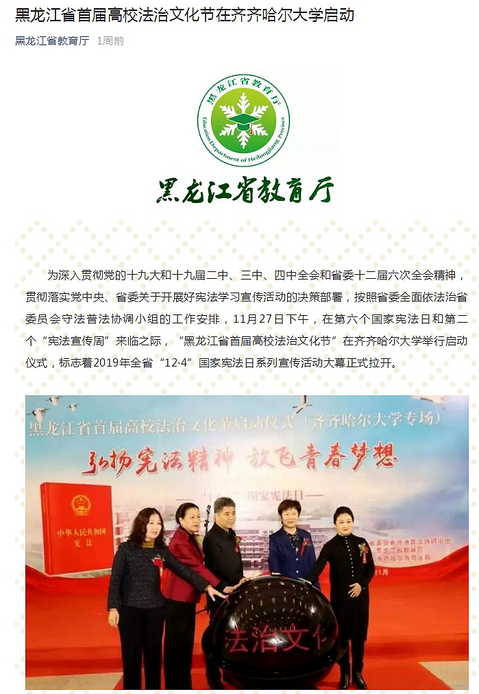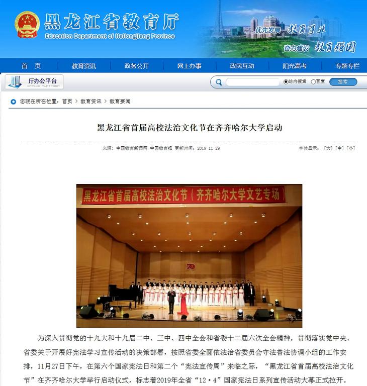 17.东北网:黑龙江省首届高校法治文化节在齐齐哈尔市启动