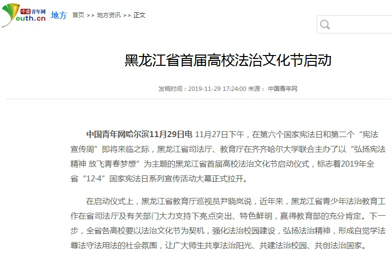 4.中国青年网:黑龙江省首届高校法治文化节启动