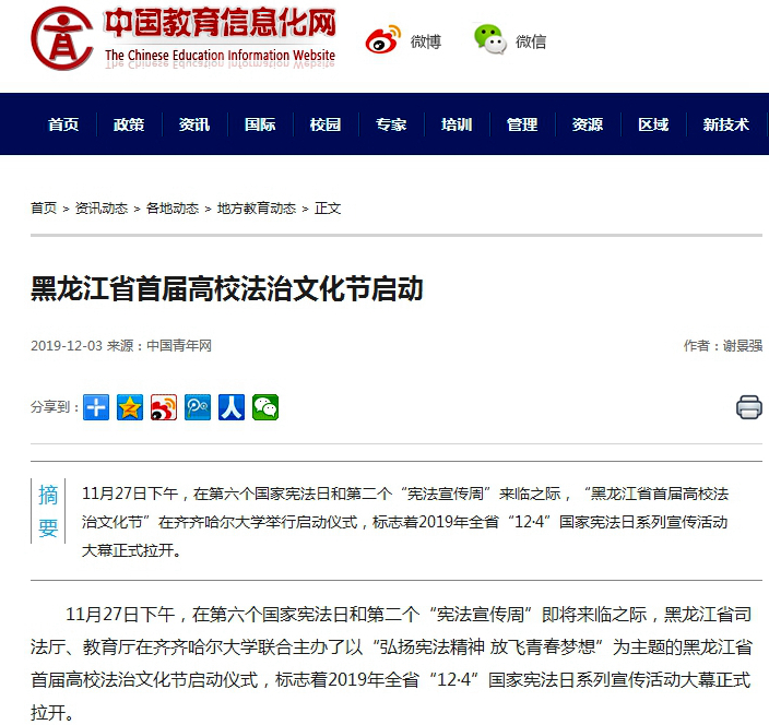 5.中国教育信息化网:黑龙江省首届高校法治文化节启动
