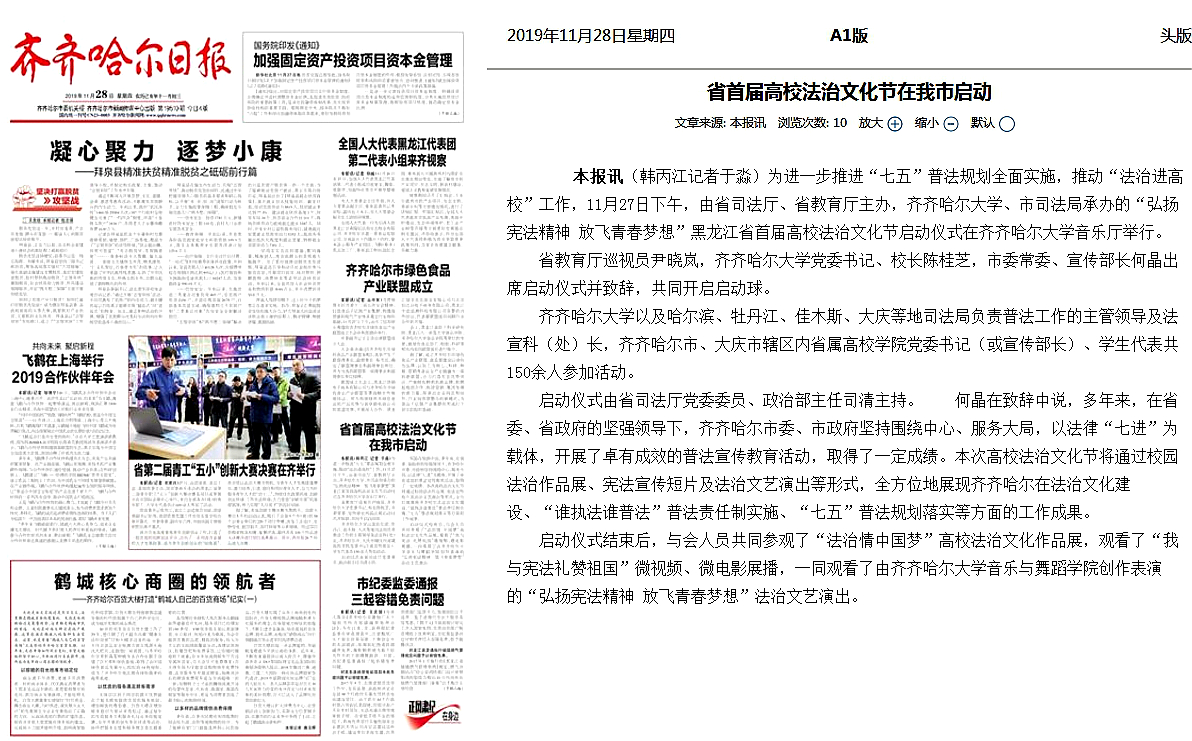 18.齐齐哈尔日报:省首届高校法治文化节在我市启动