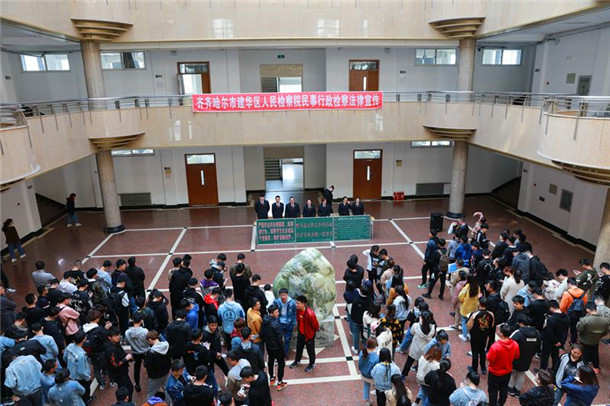 4月24日下午,学生工作部(学生处)邀请齐齐哈尔市建华区人民检察院的检察官,在西区主楼阳光大厅开展“送法进校园”活动,全方位进行民事行政法治宣传。广大师生对“校园贷”“套路贷”等行为涉及的民事法律问题有了进一步的了解,增强了法治观念和依法维护合法权益的自觉性。