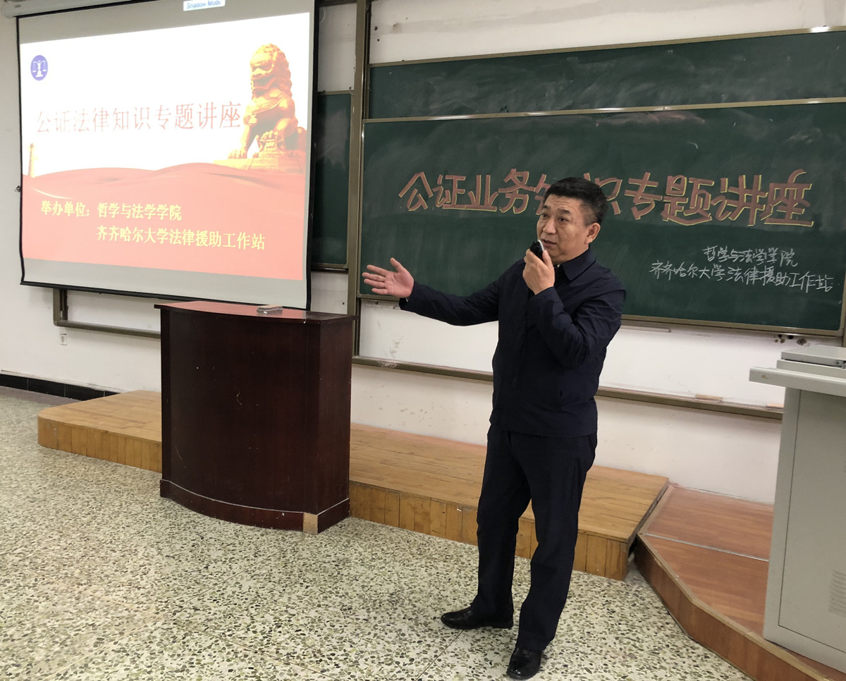 10月28日,学院邀请齐齐哈尔市公证处主任万军海在25教J202室举办了“公证法律知识”专题讲座。通过万海军主任的精彩讲解进一步加深了同学们对公证法律知识的认识。