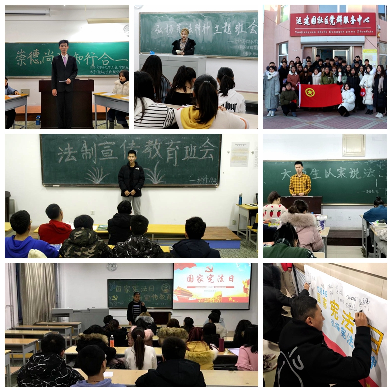 为宣传宪法知识,树立法治观念,使宪法精神深入人心,化学与化学工程学院、文学与历史文化学院、材料科学与工程学院、外国语学院、计算机与控制工程学院、轻工与纺织学院、理学院等单位以国家宪法日为契机分别以主题班会、主题签名、主题宣讲、主题辩论赛、主题讲座等形式开展了丰富多样的法治宣传活动,使法治精神之花开满了冬日的齐大校园。