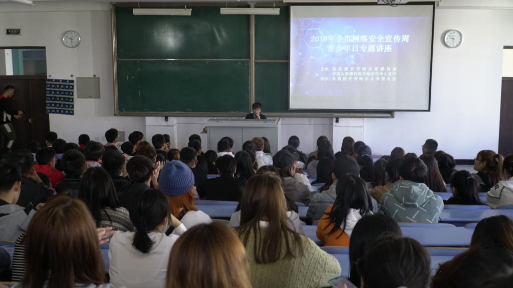 9月21日,校团委在中主阶梯教室202举办2019年网络安全宣传周青少年日专题讲座,由中国人民银行科技科网络工程师、全国网络技术大赛第8名获得者高键博同志主讲,各学院240余名团干部代表参加,增强了当代青年大学生的网络安全意识。