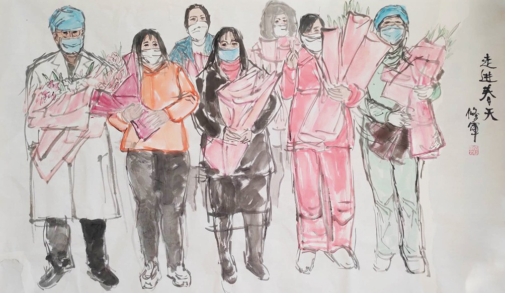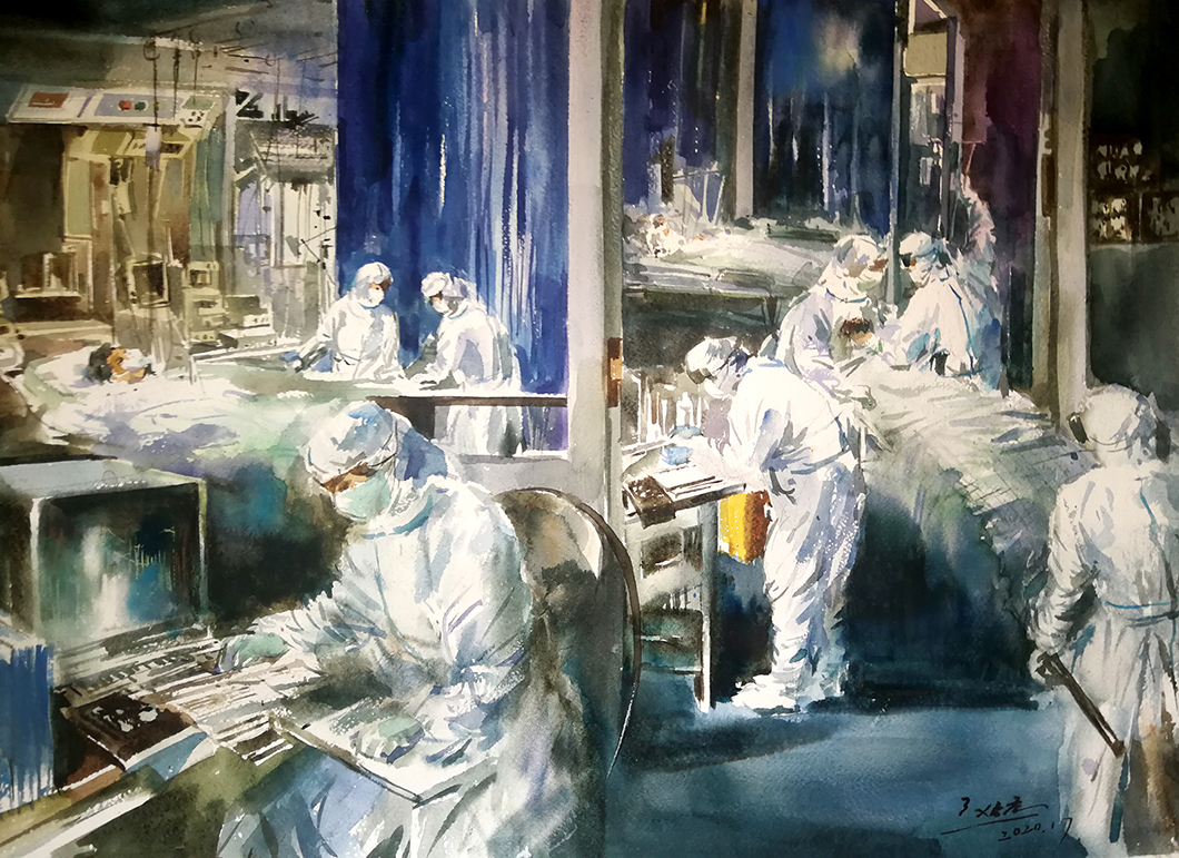 创作简介:自武汉由于重大传染病宣布封城以来。我的心与疫情防控连在一起了,歌颂各行各业的抗疫英雄,传播英雄事迹,抒发内心的情感。激发人们爱国热情,对真善美的歌颂成为我的创作初衷。创作过程中,我以快速的书写性用笔,以纪实的方式提炼概括形象。这些创作锤炼了我的技巧,洗涤了我的心灵。希望给人们以激励,启迪,让我们的人民更团结一致,愿祖国更美好。武汉加油,中国加油!
