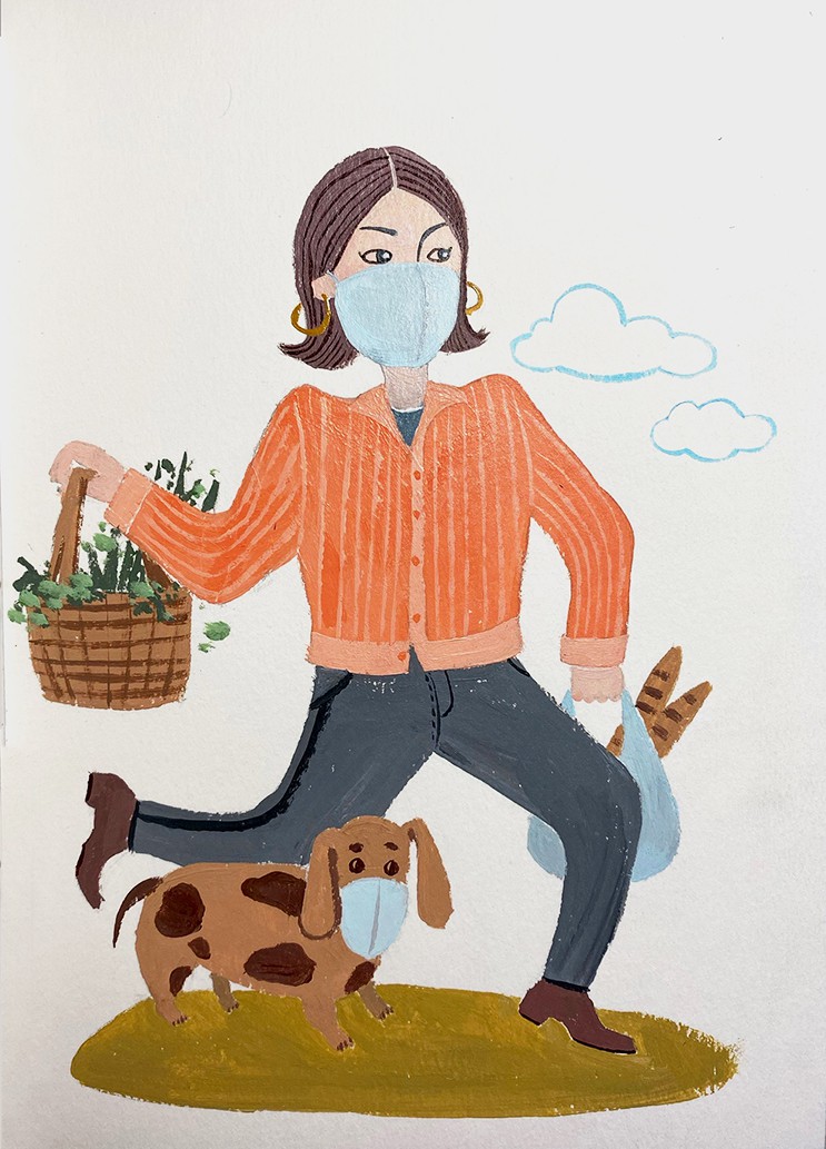 《共战疫情之出门买菜》插画 金禹含
