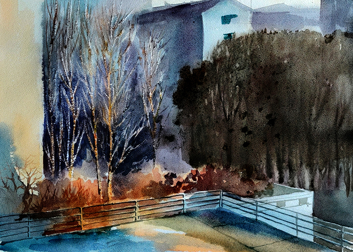 《抗疫日记——封闭时期的暖阳》水彩 马涛