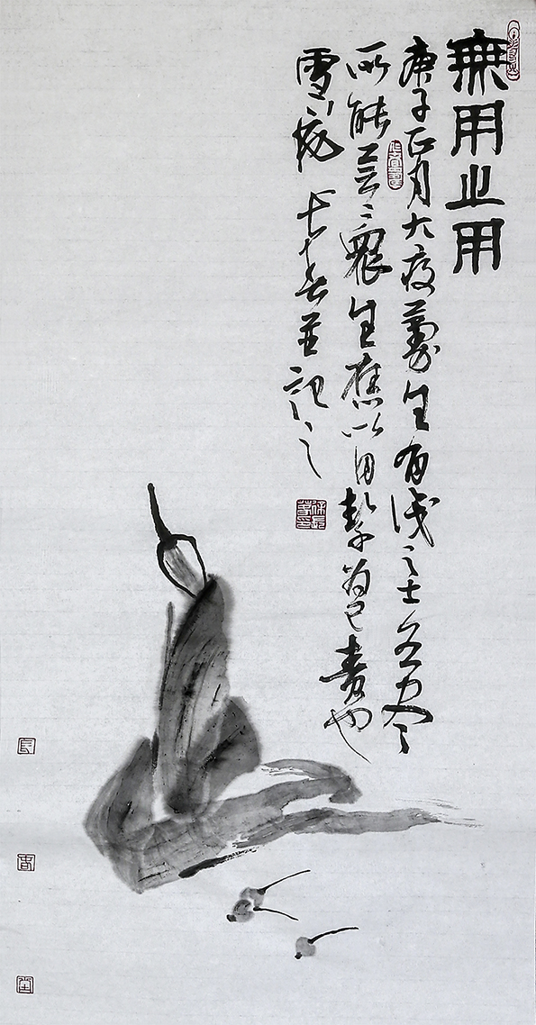 款识:无用之用。庚子正月,大疫蔓生,有识之士各尽所能,芸芸众生应以自洁为己责也!雪庵长春并记之。