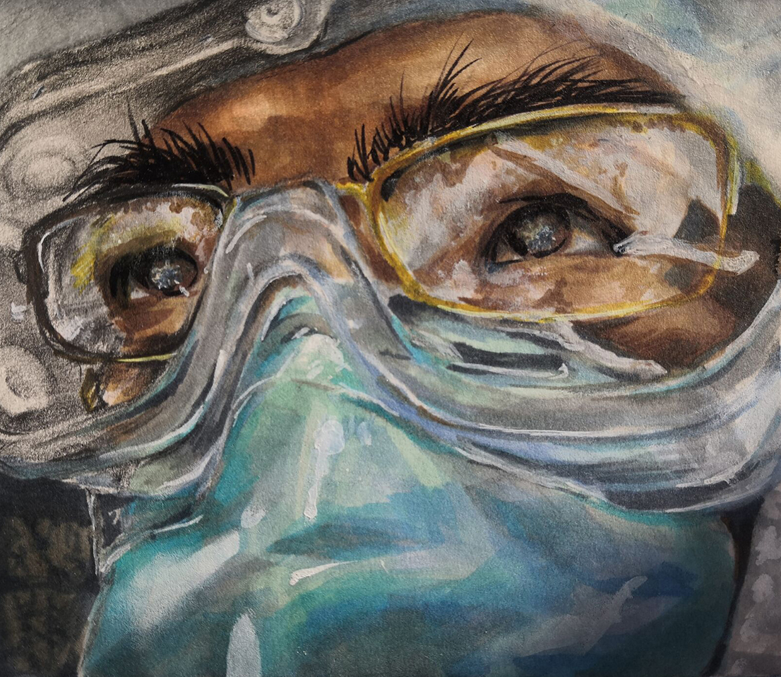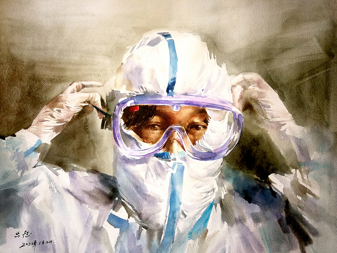 《抗疫英雄日记——最美容颜》水彩 马涛