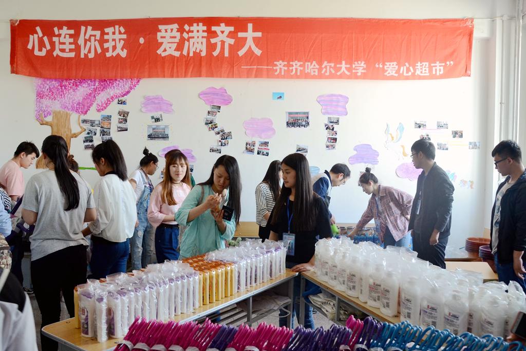 (爱心超市向家庭经济困难学生免费发放生活用品)