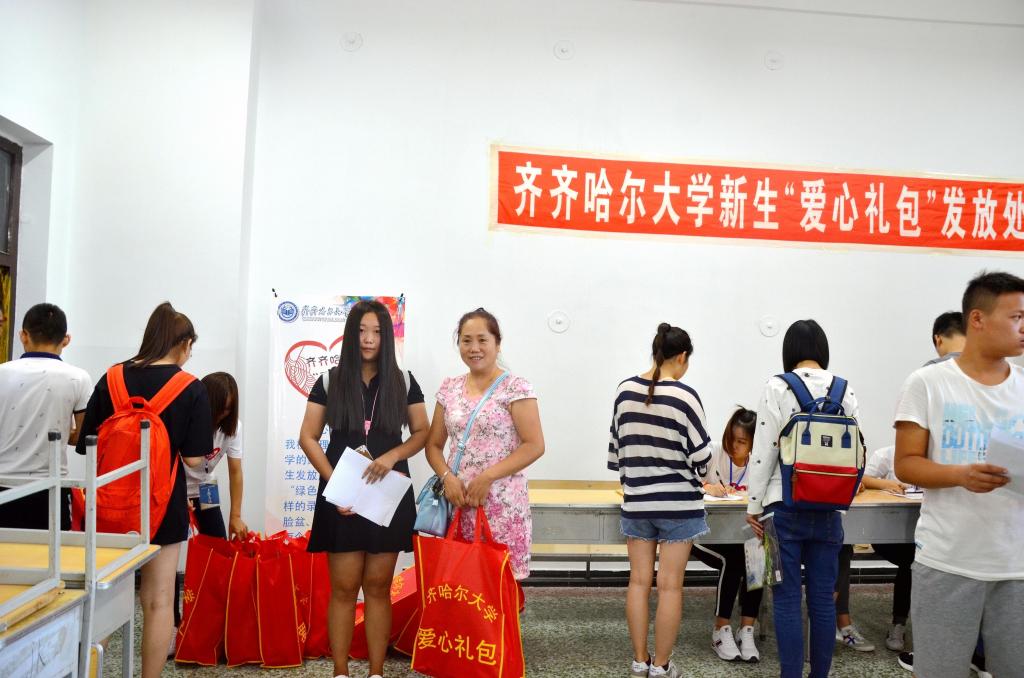 (为新生发放“爱心礼包”)