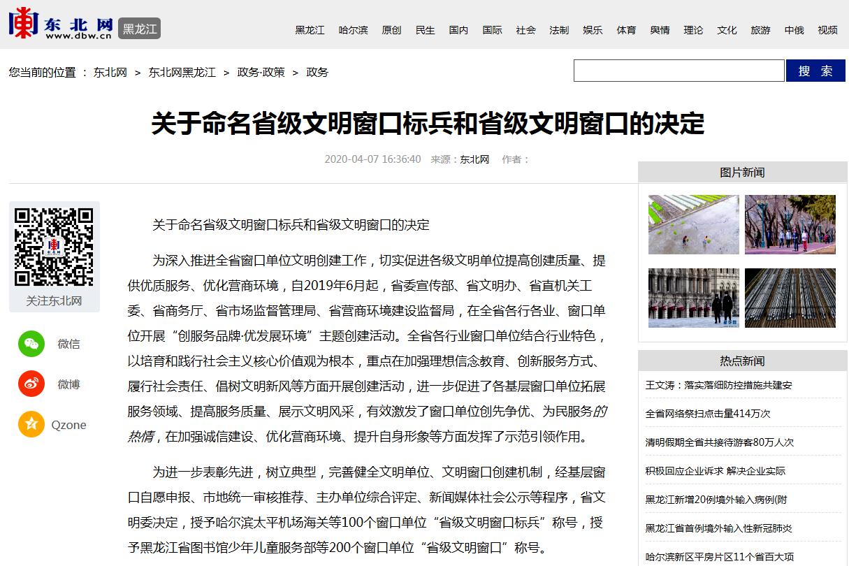近日,黑龙江省文明委下发了《关于命名省级文明窗口标兵和省级文明窗口的决定》,sunbet申搏学生工作部(学生处)学生资助管理中心在全省“创服务品牌·优发展环境”主题创建活动中荣获了“省级文明窗口”称号。这是sunbet申搏文明单位创建工作取得的又一个丰硕成果!
