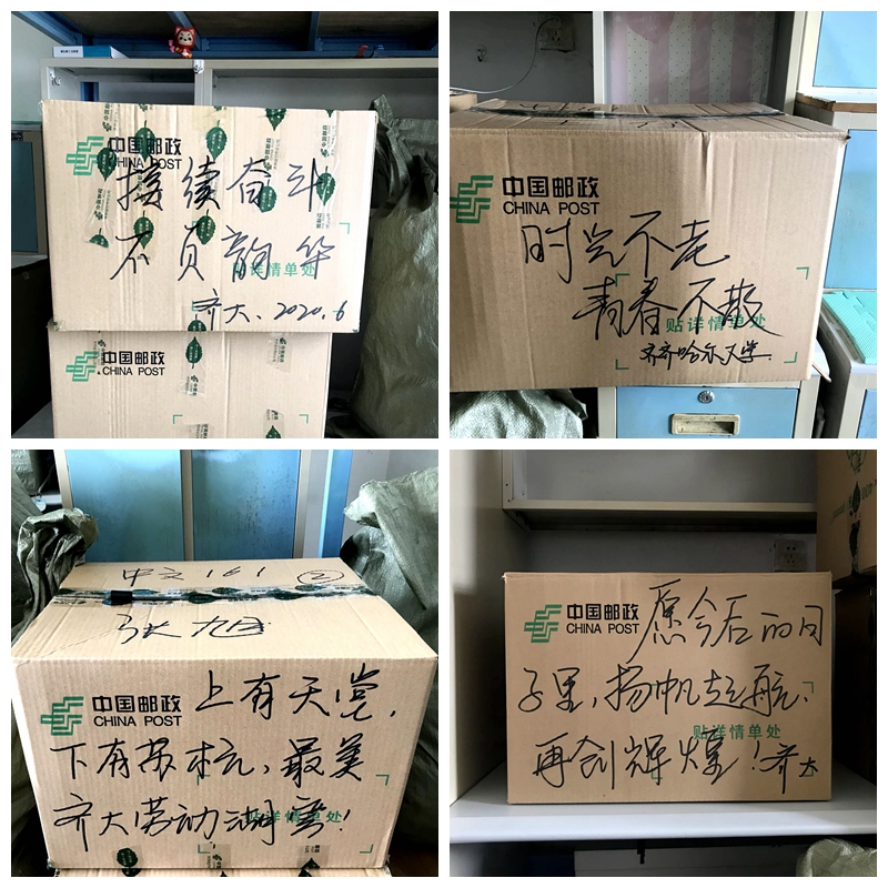 一场历时数年的陪伴与成长,从初秋到盛夏,从遇见到离别,尚未叙尽重逢的思念,离别却猝不及防的到来。对于整天和同学们在一起的辅导员老师,今年的毕业季注定与众不同,承载着太多的不舍与留恋。文学与历史文化学院学工办主任宋菲菲老师在为毕业班同学打包行李物品时,看到同学们大一军训时的青涩合影,或是墙上挂着的各种晚会照片时常常泪目。在为同学们标注邮寄地址时,她把自己的美好祝福与期许也写在了行李箱上。“接续奋斗、不负韶华!”“扬帆起航、再创辉煌!”......
