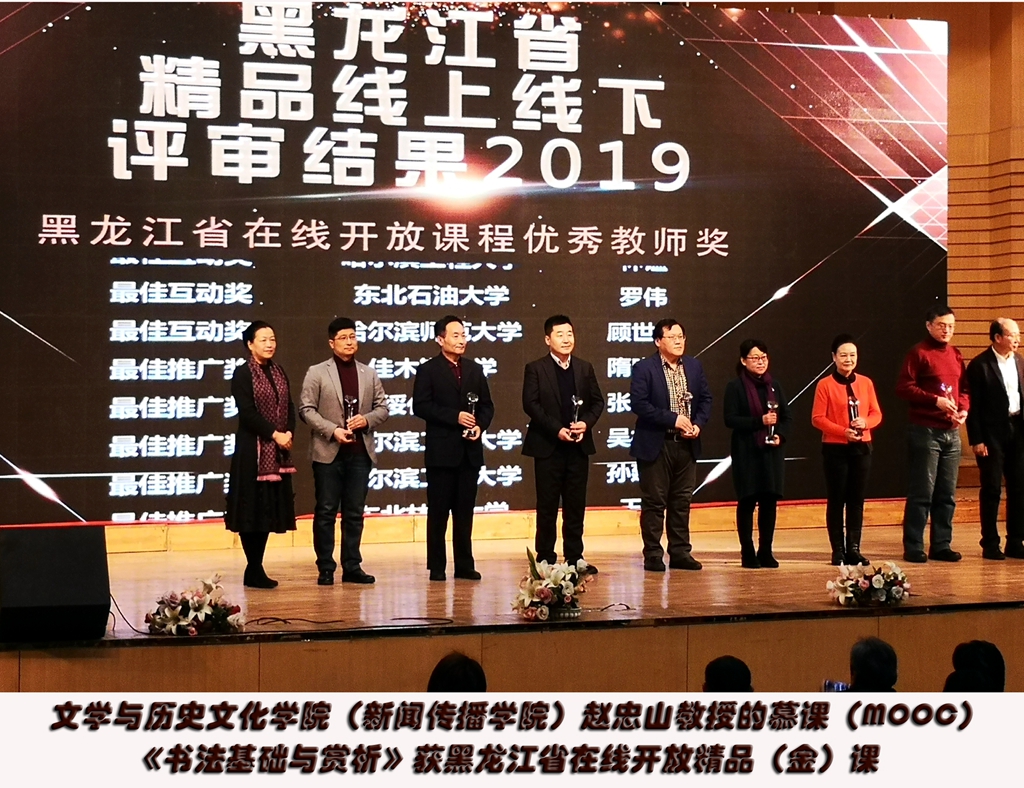 赵忠山教授注重教学研究,将科研成果转化为教学资源,开发了本科、研究生特色课程。本年度他承担着国家社会科学基金项目的主持工作,同时承担了全国社科项目200多万字的评审工作,以及省级教改项目《基于慕课(MOOC)的混合式教学改革与实践》的教科研任务,出版了《书法基础与赏析》自编教材。他将这些成果转化到本科生、研究生的教学之中,分别为同学们开设了《书法基础与赏析》《清代黑龙江流人文学研究》等特色课程。同时为全省干部培训开设了《清代黑龙江省流人对地域文化的贡献》网络特色课程,目前全省干部点击学习已达26600多人次。