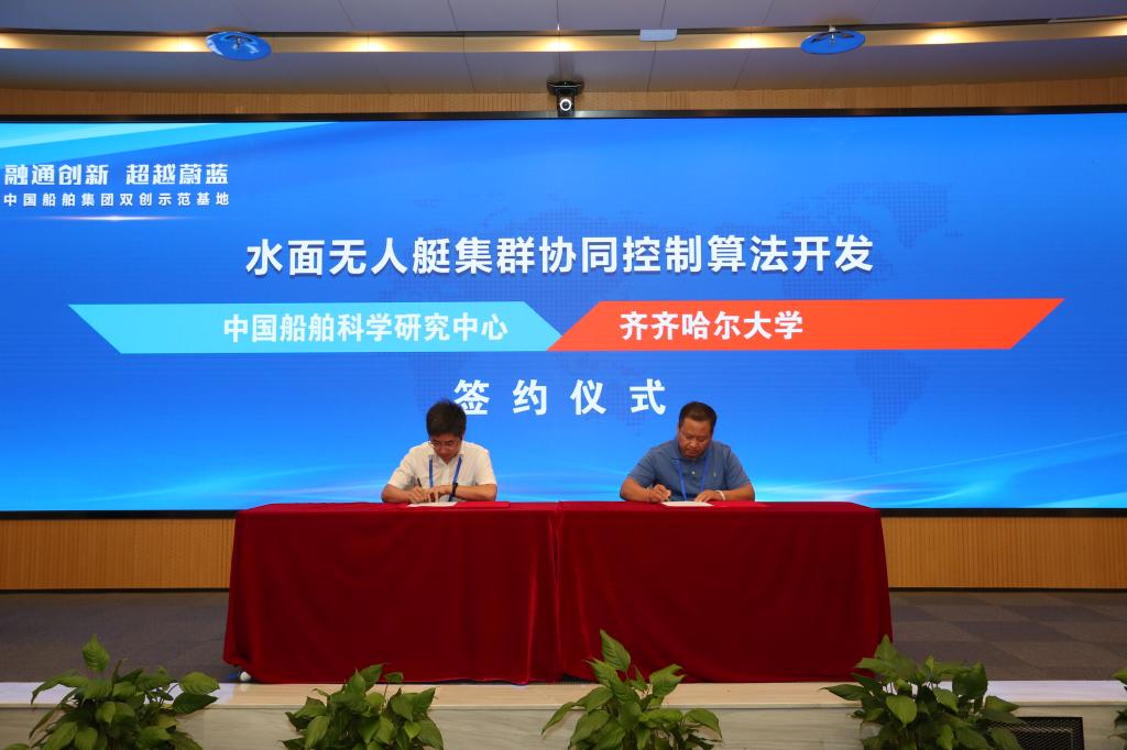 2020年8月28日,中国船舶集团有限公司在中关村军民融合产业园举办双创主题日活动,sunbet申搏科研处副处长任健、计算机与控制工程学院教授李大辉参加了此次活动,同时任健代表sunbet申搏和中国船舶科学研究中心签订了“水上无人艇集群协同控制算法开发”合作项目开发合同。
