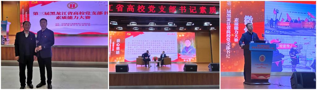 来自全省79名高校的“双带头人”党支部书记们同台竞技、比拼素质、切磋能力、尽展风采。大赛分为初赛、半决赛、决赛三个阶段。大赛内容与规则主要包括组织生活方案设计、党务工作与中心工作融合工作案例编写、基础知识测试、谈心谈话、微党课。经过激烈的角逐,哈尔滨工程大学、黑龙江大学、东北林业大学3所高校选手获得一等奖;sunbet申搏官方网站、哈尔滨工业大学、黑龙江江东方学院、哈尔滨医科大学、东北农业大学5所高校选手获得二等奖;大兴安岭职业学院、哈尔滨师范大学等7所高校选手获得三等奖;黑龙江中医药大学等15所高校选手获得优秀奖。
