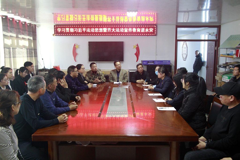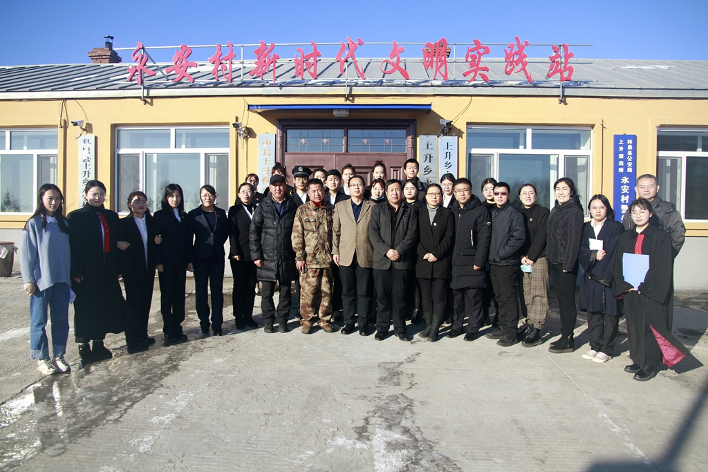 为深入学习贯彻习近平法治思想,深化新时代文明实践中心共建共育,落实《关于印发<sunbet申搏官方网站与拜泉县新时代文明实践中心、拜泉县上升乡永安村新时代文明实践站结对共建方案>的通知》(齐大办(党)字〔2020〕6号)的文件精神,在第七个“国家宪法日”即将到来之际,11月28日,哲学与法学学院党委书记于春梅,校党委宣传部副部长何强,哲学与法学学院副书记张树启,带领哲学与法学学院30余名师生,前往拜泉县上升乡永安村开展习近平法治思想宣传、法律援助等活动,大力弘扬宪法精神。