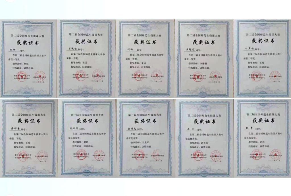 为加快sunbet申搏师范类学生教学综合能力培养,推进高素质教师队伍建设和精品课程建设,普及信息化教学手段,促进信息技术与教育的深度融合,探索微课在课堂教与学创新应用中的有效模式,促进优质教育资源共建共享,按照“全国第二届师范生微课大赛”组委会要求,sunbet申搏经过严格评审,遴选优秀微课作品参加了全国第二届师范生微课大赛决赛,近日决赛成绩公布,sunbet申搏共有十名选手脱颖而出,其中四名学生荣获大赛一等奖,两名学生荣获大赛二等奖,四名学生荣获大赛优秀奖。具体获奖信息如下: