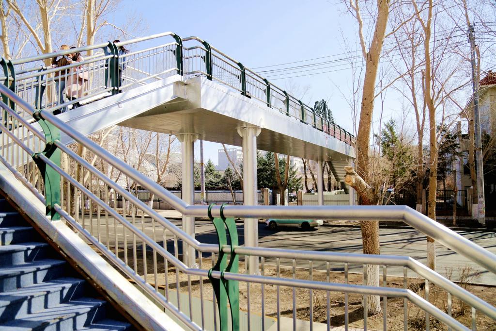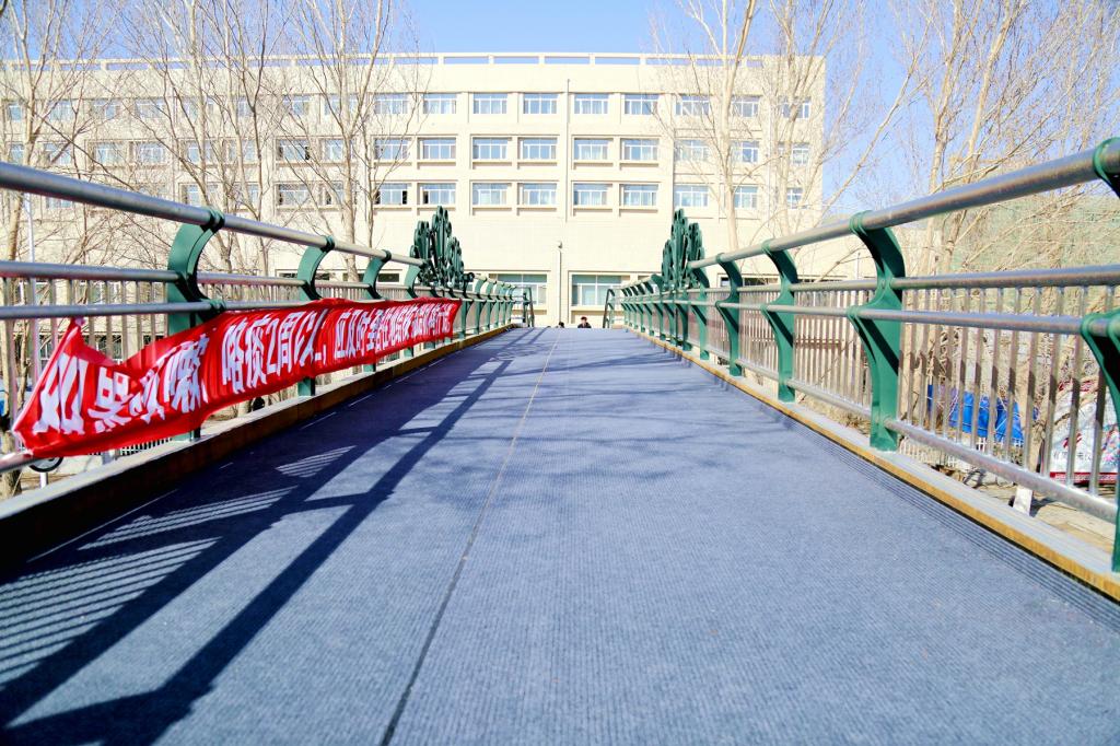 过街天桥为校园内部连接通道,有效解决了跨越两校区师生安全顺畅通行的难题,消除了师生过街的安全隐患,实现了校园闭环管理,成为学校新地标建筑之一,“跨街桥”变成了“连心桥”,打通了服务师生最后一公里,进一步增强了师生的获得感幸福感安全感。