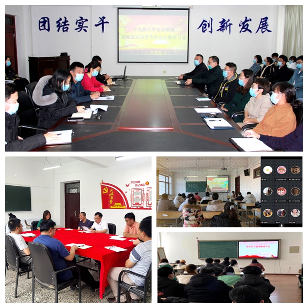 各党委、直属党支部组织师生员工围绕习近平法治思想、中国共产党第十九届中央委员会第六次全体会议公报及决议等内容,结合工作实际,举办专题党课,召开班团会,学习宪法,开展研讨交流,深化思想认识,弘扬宪法精神。
