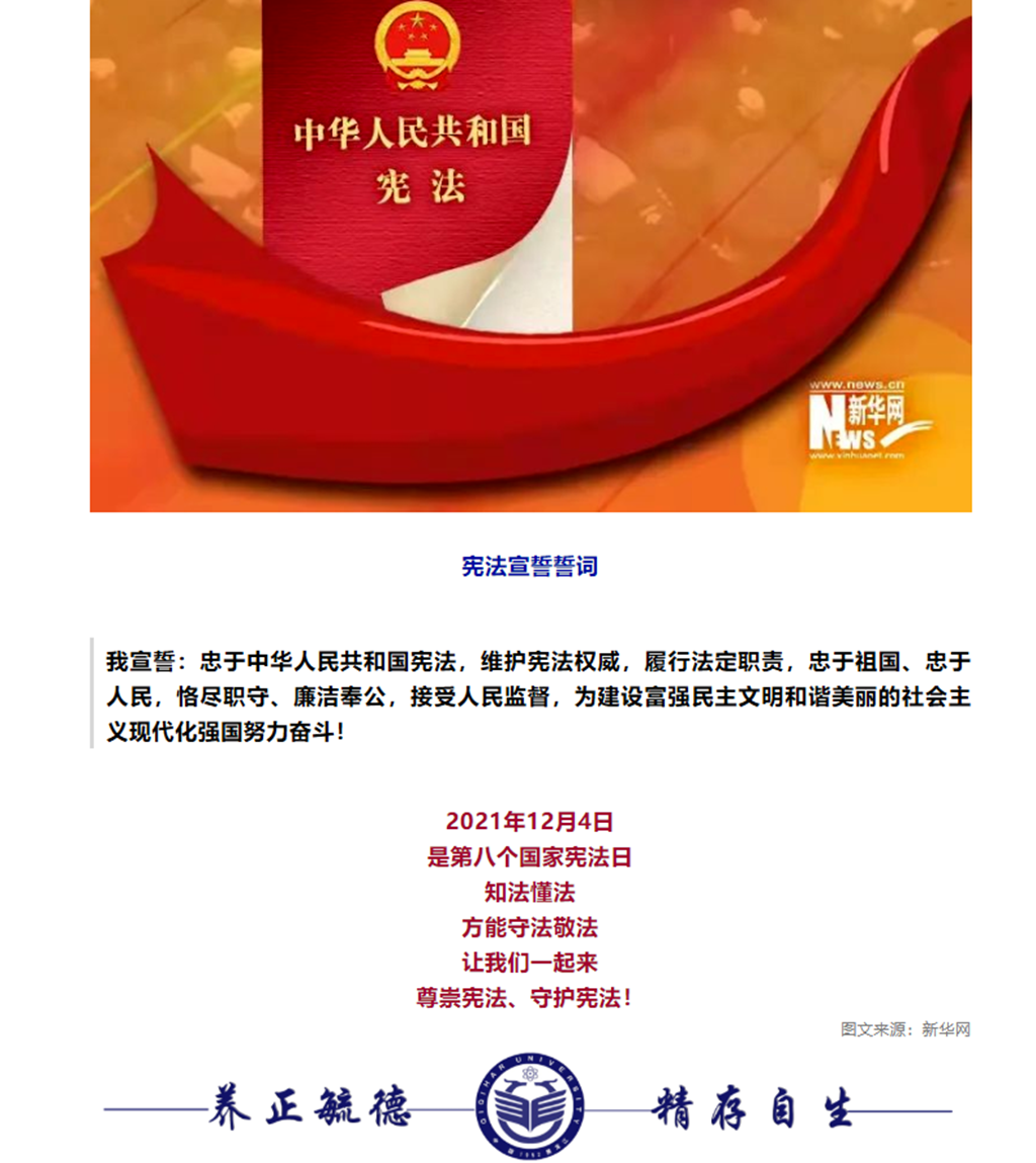2021年,在校党委统筹部署、校普法工作领导小组周密安排和各党委、直属党支部的积极参与下,sunbet申搏围绕“以习近平法治思想为指引坚定不移走中国特色社会主义法治道路”的主题,以第八个“国家宪法日”、第四个“宪法宣传周”为契机,深入贯彻落实“八五”普法规划,开展了一系列丰富多彩的法治宣传教育活动,弘扬宪法精神,筑法治之基,行法治之力,积法治之势,进一步推动师生树立宪法意识和法治观念,营造了学法知法懂法用法的浓厚法治氛围。