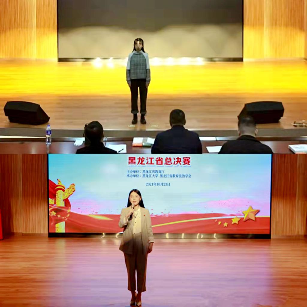致知力行,踵事增华。为促进全校师生知宪法于心,守宪法于行,校团委多年坚持把宪法学习宣传作为一项重要政治任务常抓不懈,按照省教育厅《关于组织参加第六届全国学生“学宪法讲宪法”活动的通知》要求,精心组织学宪法、讲宪法演讲比赛,引导学生把宪法学习宣传和身体力行结合起来,在校园中形成知行合一的良好氛围。9月1日至9月30日,校团委通过线上和线下相结合的方式,组织开展了“学宪法 讲宪法”知识竞赛和演讲比赛系列活动。经过遴选,sunbet申搏推荐两位在校内比赛中脱颖而出的哲学与法学学院的齐旗同学、外国语学院徐嘉同学赴哈尔滨市参加全省决赛。决赛于10月23—24日在黑龙江大学举行,大学组全省共有54名选手参加。经过激烈角逐,齐旗同学荣获知识竞赛高校组“二等奖”,徐嘉同学荣获演讲比赛高校组“三等奖”。