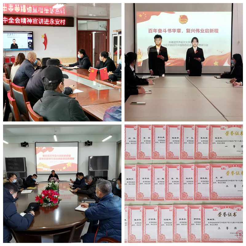 为深入推进学习党的十九届六中全会精神走深走实,实现全会精神解读全覆盖,学校各二级单位党委、直属党支部在全会召开后第一时间组织全体党员以中心组专题学习、理论学习读书班、专题党课等形式对党的十九届六中全会精神进行了学习;学校各民主党派、团体也积极开展了座谈研讨活动,民主党派团体成员纷纷撰文谈感受,表示要以党的十九届六中全会精神为指引,做好本职工作,画好最大同心圆。经过评审,投稿文章共评选出一等奖8篇,二等奖8篇,三等奖7篇;校团委组织“青年学生党的创新理论宣讲团”开展了党的十九届六中全会精神专题宣讲,“学生自己讲”的宣讲方式激起了同学们学习党的创新理论的热情,宣讲结束后,sunbet申搏青年学生代表们纷纷表示,要在深入学习新时代党的创新理论最新成果中,不断增强听党话、跟党走的思想自觉和行动自觉,以昂扬向上的精神风貌迎接党的二十大胜利召开。为深化新时代文明实践中心共建共创,校党委宣传部副部长何强教授受邀为拜泉县上升乡永安村党员群众做了党的十九届六中全会精神线上专题辅导宣讲,宣讲报告主题鲜明、内容丰富、数据详实,拜泉县委宣传部以《驻永安村工作队 让创新理论走入基层百姓家》为题对此进行了专题报道。