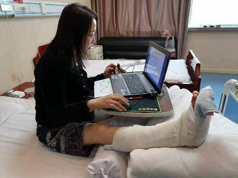 4月8日晚,外国语学院的老师们在职工交流群里纷纷为王莉娟老师点赞,这是为什么呢?原来是大家刚刚得知1987年就参加工作,有着36年党龄的王老师在确诊粉碎性骨折后, 为了不影响线上教学质量,在病床上依然坚持为同学们讲课,大家深深为她默默坚守初心敬业爱生的行为而感动。