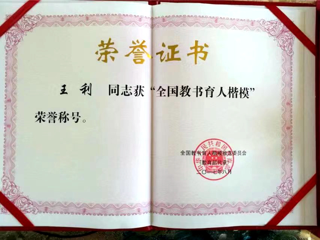 在平凡的教学道路上,王利没有忘记教书育人的初心,任劳任怨,追求卓越,努力让自己在平凡的岗位上发出不平凡的回响。作为一名学科带头人,为了上好每一节课,他不断钻研教材,不断探索教法,寓教于乐,融情于理,培养学生的创新思维和创新精神。二十多年来,他严谨治学,潜心钻研,投身课程改革,注重实践,善于反思,多次获国家、省、市、县优质课、公开课、科研成果一等奖。积极主持、参与国家、省、市、县科研课题近20项。出版著作《思想政治教育与传统文化》,多篇论文在国家级刊物上公开发表。