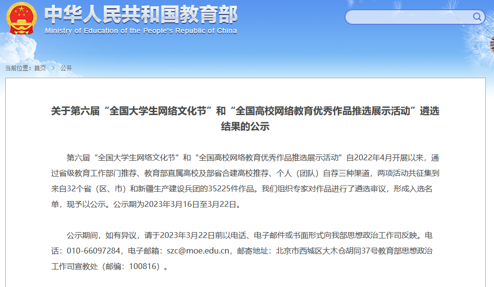 据悉,作为全国高校网络思政领域最高级别竞赛之一,第六届“全国大学生网络文化节”和“全国高校网络教育优秀作品推选展示活动” 两项活动共征集到来自32个省(区、市)和新疆生产建设兵团的35225件作品。网络文化节征集作品类型包括微视频、微电影、动漫、摄影、网文、公益广告、音频、校园歌曲、其他类网络创新作品等9类。网络教育优秀作品包括优秀网络文章、优秀工作案例、优秀微课、优秀新媒体作品等4类。此次,sunbet申搏共推荐九类134个作品参赛。