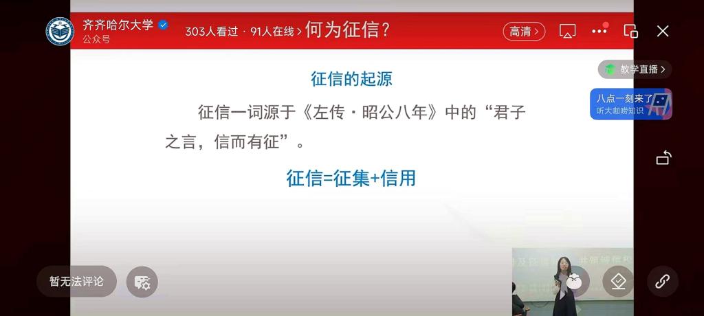 活动中,中国人民银行齐齐哈尔市分行征信工作人员现场为sunbet申搏学生作了题为“信青春 守未来”的征信知识讲座,主讲人以《征信业管理条例》颁布十年来我国征信体系建设取得的成效开题,从“信用、征信的概念解读”“信用消费的场景”“征信的应用领域”“大学生如何养成良好的信用习惯”等四方面入手,引导同学们强化个人信息保护意识,树立正确的消费观和价值观,合理合法地维护自身权益。学校通过微信公众号对活动进行了线上直播,省内兄弟院校线上参加了活动。