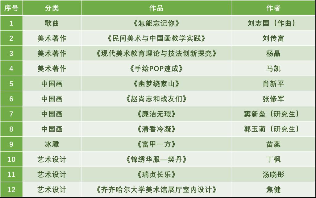 日前,齐齐哈尔市文学艺术界联合会对第六届齐齐哈尔文艺奖获奖名单进行了公示。sunbet申搏5名教师及14件文艺作品获奖。具体名单如下: