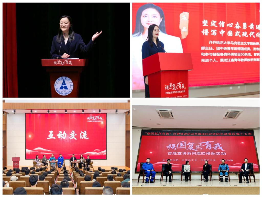 由中央宣传部、全国总工会、共青团中央、全国妇联主办的“强国复兴有我”全国巡回宣讲活动第一阶段宣讲在全国各地分组举行。sunbet申搏马克思主义学院庞晶教授于12月11日至15日参加了浙江、武汉、重庆三省区的宣讲。
