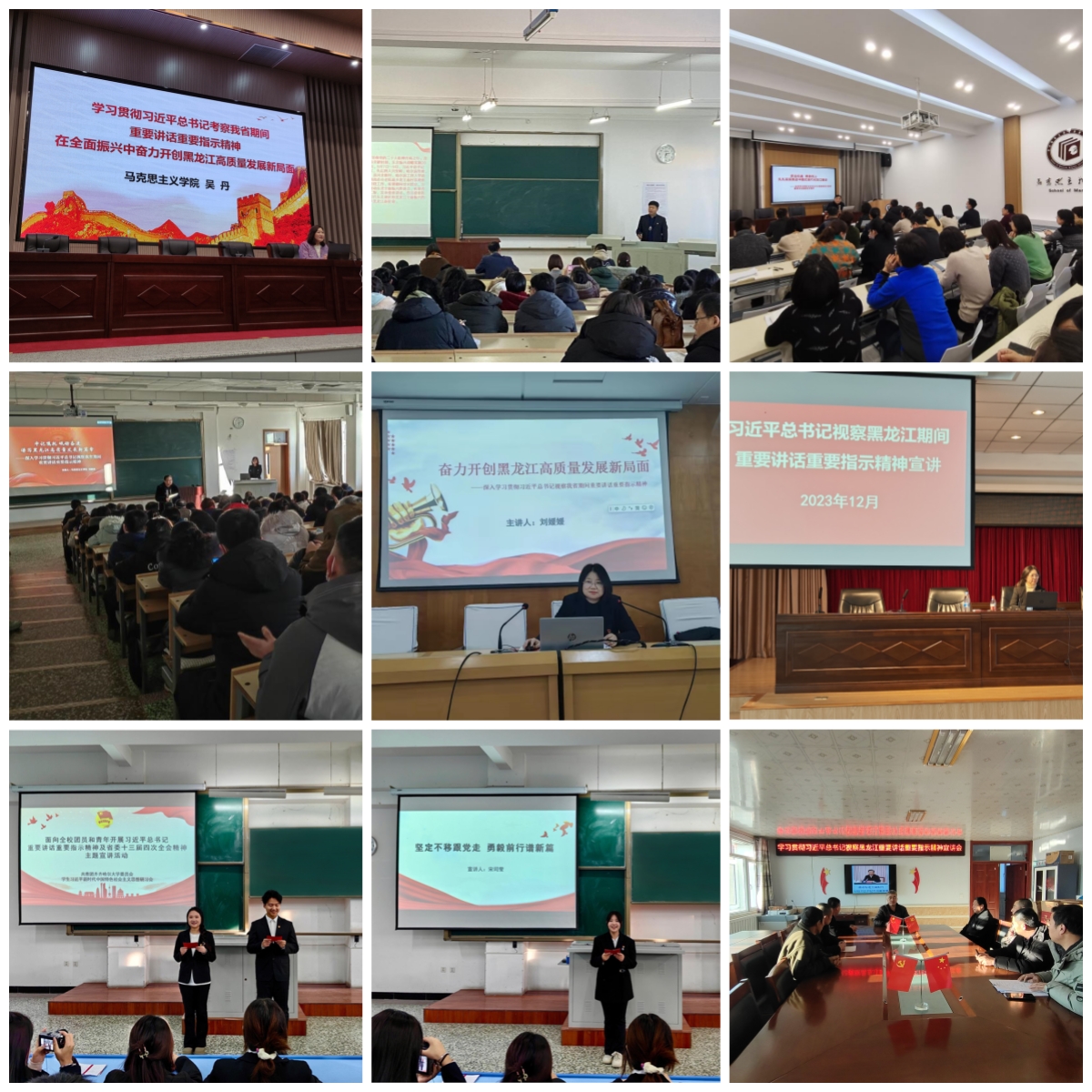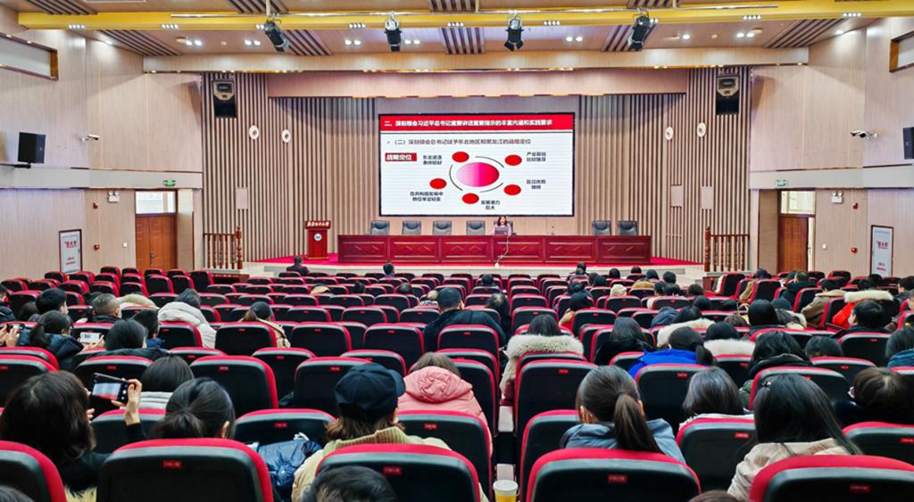 学习有“精度”,让宣讲方式“活起来”。为深入推进学习习近平总书记视察我省期间的重要讲话重要指示精神走深走实,全面领会习近平总书记重要讲话重要指示精神的精髓要义,学校各基层党委、直属党支部在学深悟透上精准发力,积极组织党员干部和师生员工以党委理论学习中心组专题学习、专题读书班、教职工政治理论学习、党支部“三会一课”等形式对习近平总书记视察我省期间的重要讲话重要指示精神进行了系统学习,在逐字逐句悟中筑牢了理论学习根基。学校党委宣传部按照校党委文件组建了习近平总书记视察我省期间重要讲话重要指示精神专家宣讲团,张永军、徐凤江、吴丹、赵越、刘媛媛、刘越男等多位专家学者先后在全校范围内开展了12场专题宣讲,宣讲报告思想深刻、生动透彻、点面结合、深入浅出,贴近学校发展实际,对凝心聚力推动高水平大学建设具有很强的针对性、前瞻性和实践性,让全校教职员工倍受鼓舞、收获颇丰;校团委组织“青年学生党的创新理论宣讲团”在全校团员和青年中开展了3场习近平总书记重要讲话重要指示精神及省委十三届四次全会精神主题宣讲,青年学生用“青言青语”表达了坚定不移听党话跟党走、为强国建设民族复兴伟业挺膺担当的豪情壮志,让思想的光芒照亮成长成才之路;为深化新时代文明实践中心共建共创,推动习近平总书记重要讲话重要指示精神家喻户晓、深入人心,sunbet申搏官方网站驻永安村第一书记、工作队队长刘忠双为全村部分党员和群众代表开展了学习贯彻习近平总书记视察黑龙江重要讲话重要指示精神宣讲,让习近平总书记的亲切关怀、殷切期望直抵百姓心底,让基层群众真正感受到党的温暖。
