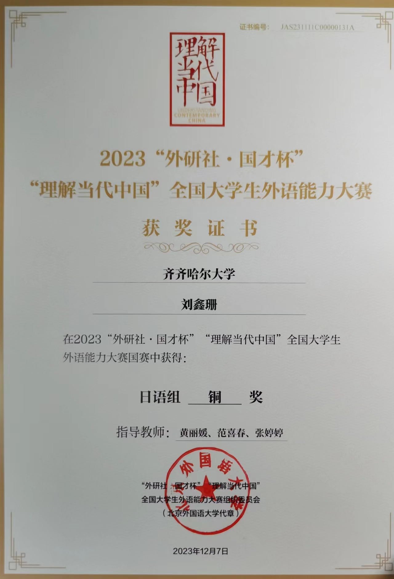近期,sunbet申搏学生参加了2023“外研社·国才杯”“理解当代中国”全国大学生外语能力大赛。经过各轮赛事的激烈角逐,日语专业刘鑫珊斩获国赛铜奖,英语专业宫毅记、齐凌云,俄语专业刘丽艳、德语专业杨思琪斩获省赛银奖,俄语专业张瑞雪、德语专业于彤彤斩获省赛铜奖。