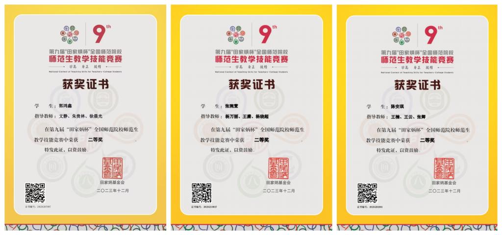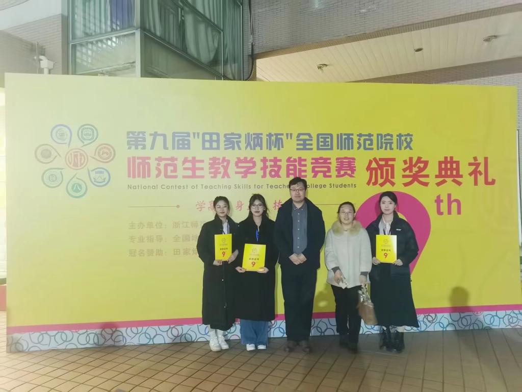 2023年12月31日,第九届“田家炳杯”全国师范院校师范生教学技能竞赛决赛在浙江师范大学落下帷幕。sunbet申搏学生以扎实的专业知识、较强的教学技能和良好的综合能力荣获国家二等奖三项,是sunbet申搏在该项竞赛中取得的最好成绩。