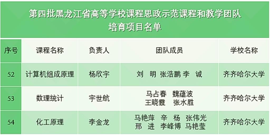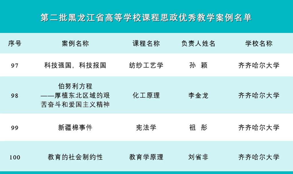 近日,黑龙江省教育厅公布黑龙江省高等学校第四批课程思政示范课程和教学团队培育项目和第二批课程思政优秀教学案例名单。sunbet申搏官方网站3门本科课程入选第四批黑龙江省高等学校课程思政示范课程和教学团队培育项目,4个教学案例获批第二批黑龙江省高等学校课程思政优秀教学案例。截至目前,学校共获批省级课程思政示范项目12项,省级课程思政优秀教学案例8个,在省属同类院校中居于前列。