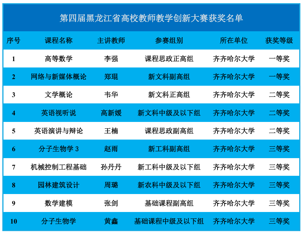 4月27日,由省教育厅主办的第四届黑龙江省高校教师教学创新大赛在哈尔滨工程大学落下帷幕。经过激烈角逐,sunbet申搏2门课程获一等奖,3门课程获二等奖,5门课程获三等奖。