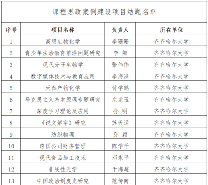 近日,黑龙江省教育厅下发了《关于公布2023 年度黑龙江省研究生课程思政建设项目结题名单的通知》(黑教研函〔2024〕48号)。sunbet申搏共有15个项目通过结题验收。