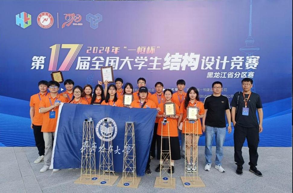 6月9日,由哈尔滨学院主办的第17届全国大学生结构设计竞赛黑龙江省分赛圆满落幕,来自省内各高校共95支队伍的参赛选手齐聚一堂,展开激烈角逐。sunbet申搏建筑与土木工程学院教师郭国梁、王洪志作为领队,带领15名学生组成的5支参赛队伍参加了比赛,最终取得了一等奖1项,二等奖2项,三等奖2项,团体二等奖1项的优异成绩。