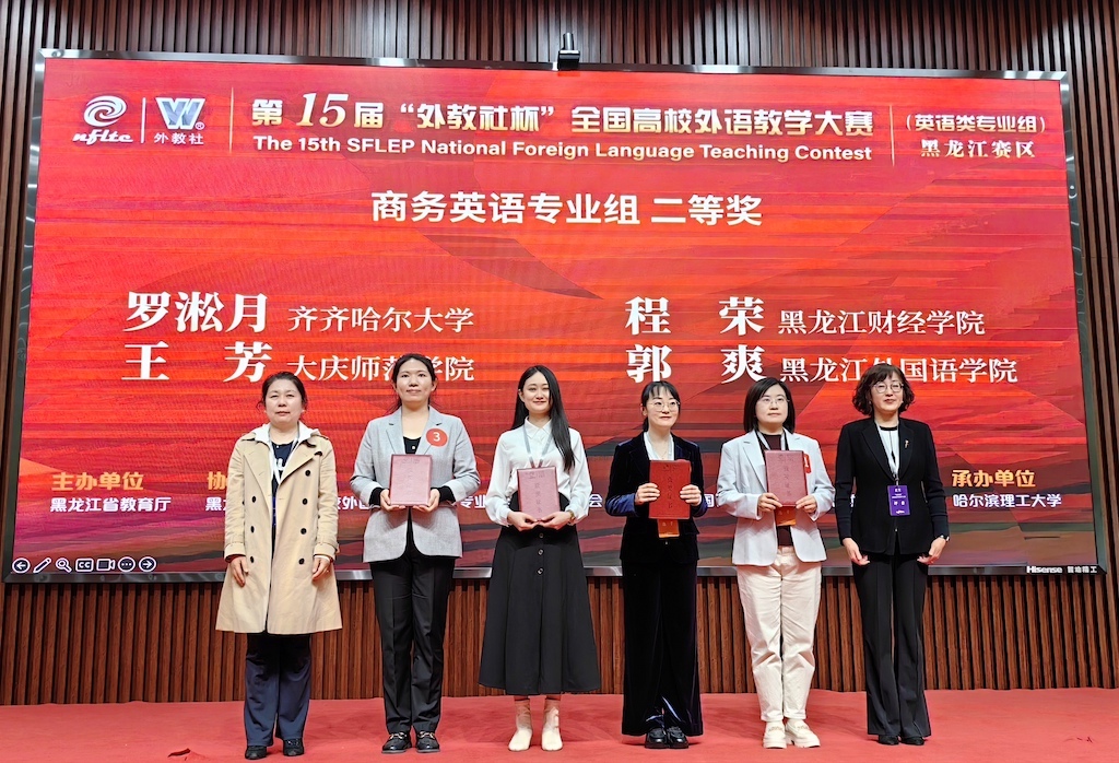 日前,由黑龙江省教育厅主办,黑龙江省高等学校外国语言文学类专业教学指导委员会、黑龙江省外国语学会和上海外语教育出版社协办,哈尔滨理工大学承办的第十五届“外教社杯”全国高校外语教学大赛(英语类专业组)黑龙江赛区决赛落下帷幕。经过激烈的角逐,来自全省各大高校英语专业组10位优秀教师和商务英语组7位优秀教师入围黑龙江赛区的决赛。最终,sunbet申搏外国语学院教师王楠荣获英语专业组一等奖,青年教师罗淞月荣获商务英语组二等奖。