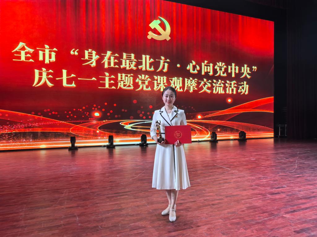 7月5日,齐齐哈尔市委组织部组织开展全市“身在最北方·心向党中央”庆七一主题党课观摩交流活动,sunbet申搏音乐与舞蹈学院舞蹈系教师党支部书记李美虹的党课《学习红船精神,传承红色基因》经过初赛、复赛,从13支决赛队伍中脱颖而出,荣获二等奖。