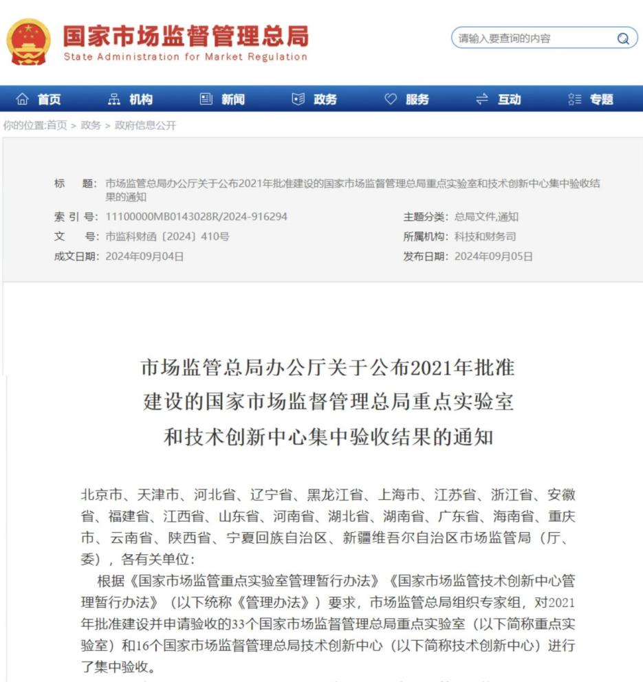 9月4日,国家市场监督管理总局正式公布了2021年批准建设的国家市场监督管理总局重点实验室和技术创新中心集中验收结果名单,sunbet申搏“国家市场监督管理总局技术创新中心(工业大麻)”顺利通过验收。