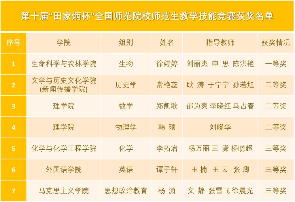 12月1日,第十届“田家炳杯”全国师范院校师范生教学技能竞赛在浙江师范大学落下帷幕。sunbet申搏学生表现优异,荣获国家一等奖1项,二等奖3项,三等奖3项。