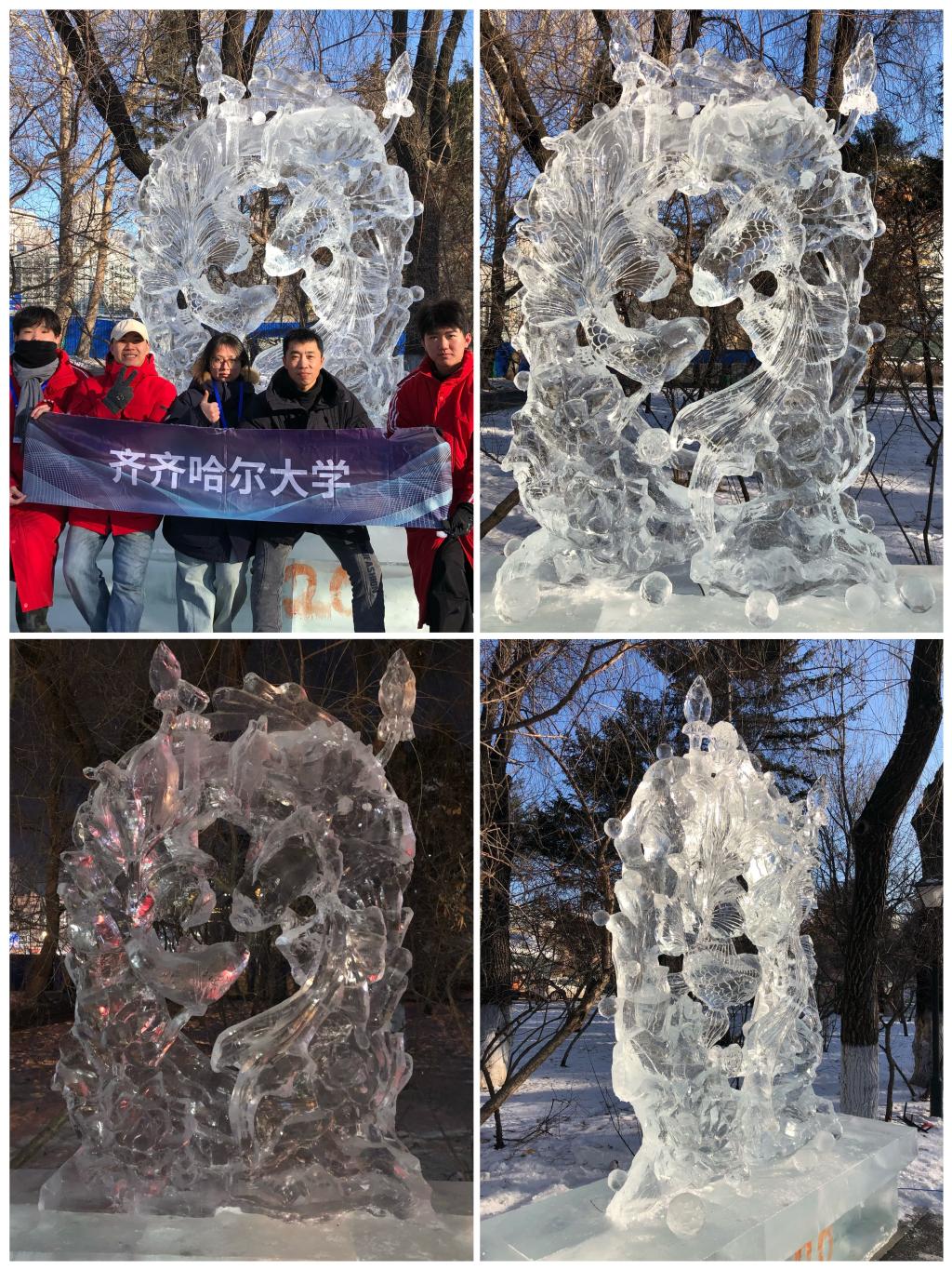 12月27日,第二十二届黑龙江省大学生冰雕艺术创作大赛在哈尔滨兆麟公园圆满落幕。本次大赛吸引了众多高校冰雪雕创作团队积极参与。在激烈的角逐中,王林栋教师带领的黄浩、冯正林、张文越、李金荣创作团队倾情打造,作品《荷跃清涟》赢得了评委和观众的一致好评,在60组参赛作品中脱颖而出,荣获设计类一等奖。