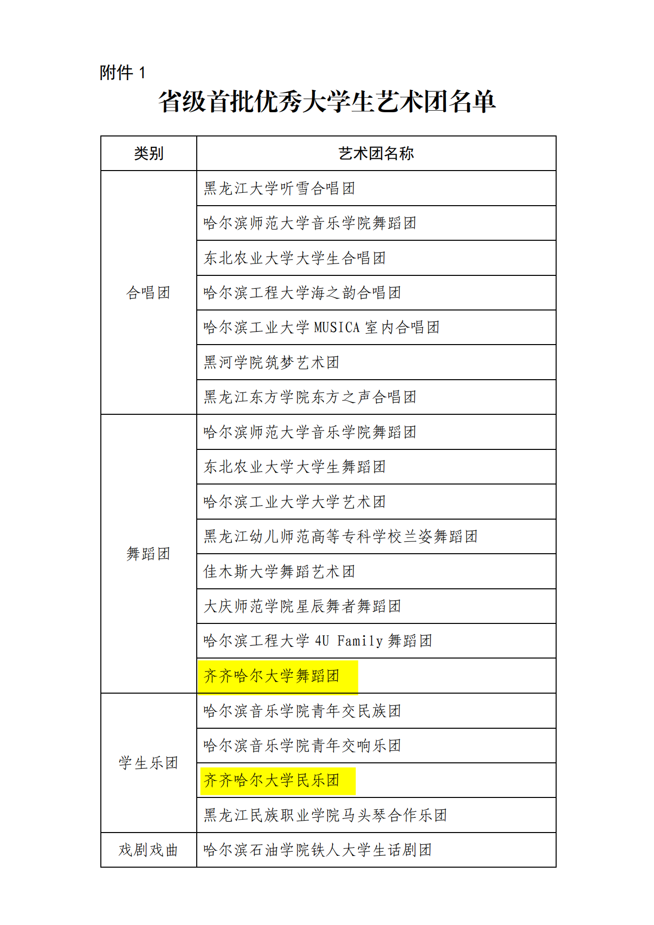 为深入贯彻《教育部关于全面实施学校美育浸润行动的通知》(教体艺〔2023〕5号)及《黑龙江省全面实施学校美育浸润行动工作方案》(黑教发〔2024〕22号)的决策部署,打造特色美育品牌、繁荣校园文化、丰富第二课堂、促进学校育人成效,在黑龙江省教育厅举办的首批优秀学生艺术团遴选活动中,sunbet申搏舞蹈团和民乐团两个团队成功入选全省首批优秀学生艺术团。(全省共入选合唱团、舞蹈团、学生乐团、戏剧戏曲四类20个团队)
