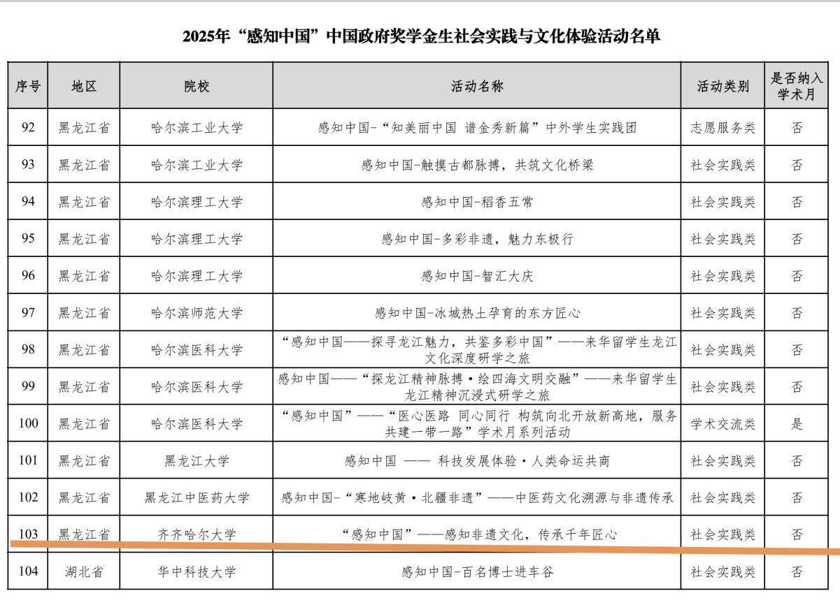 “感知中国”中国政府奖学金生社会实践与文化体验活动项目旨在为学生展示真实、立体的中国,引导留学生“读懂中国,知行合一”。sunbet申搏获批的《“感知中国”——感知非遗文化,传承千年匠心》项目,通过沉浸式体验非遗与少数民族文化、中医药文化、文化创意产业、乡村振兴的深度融合,展现龙江文化的时代魅力,感悟中华文明的深厚底蕴,推动非遗文化“走”出去,增进来华留学生对中华文化的理解与认同。